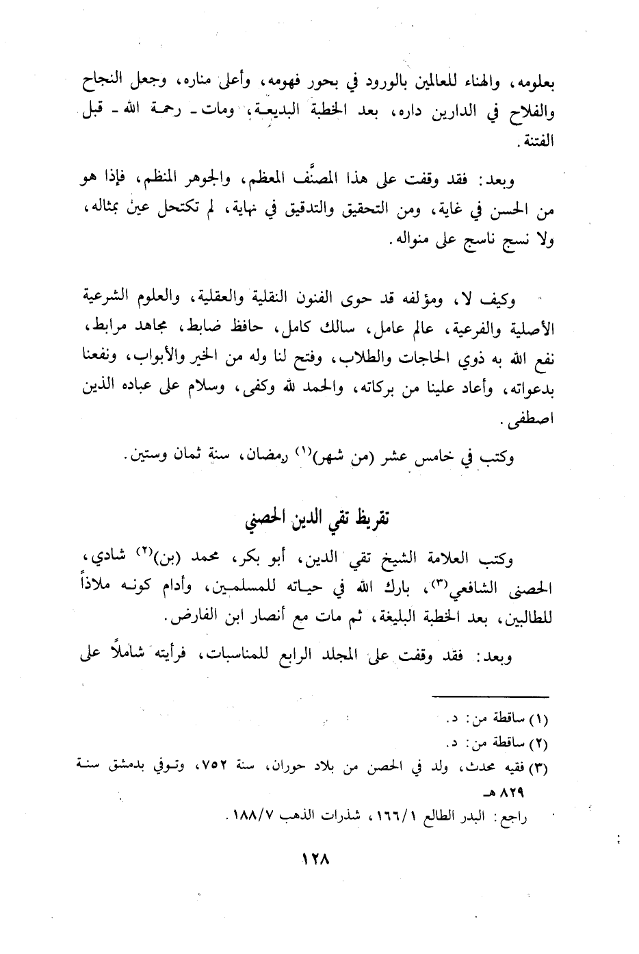 تقريظ تقي الدين الحصني