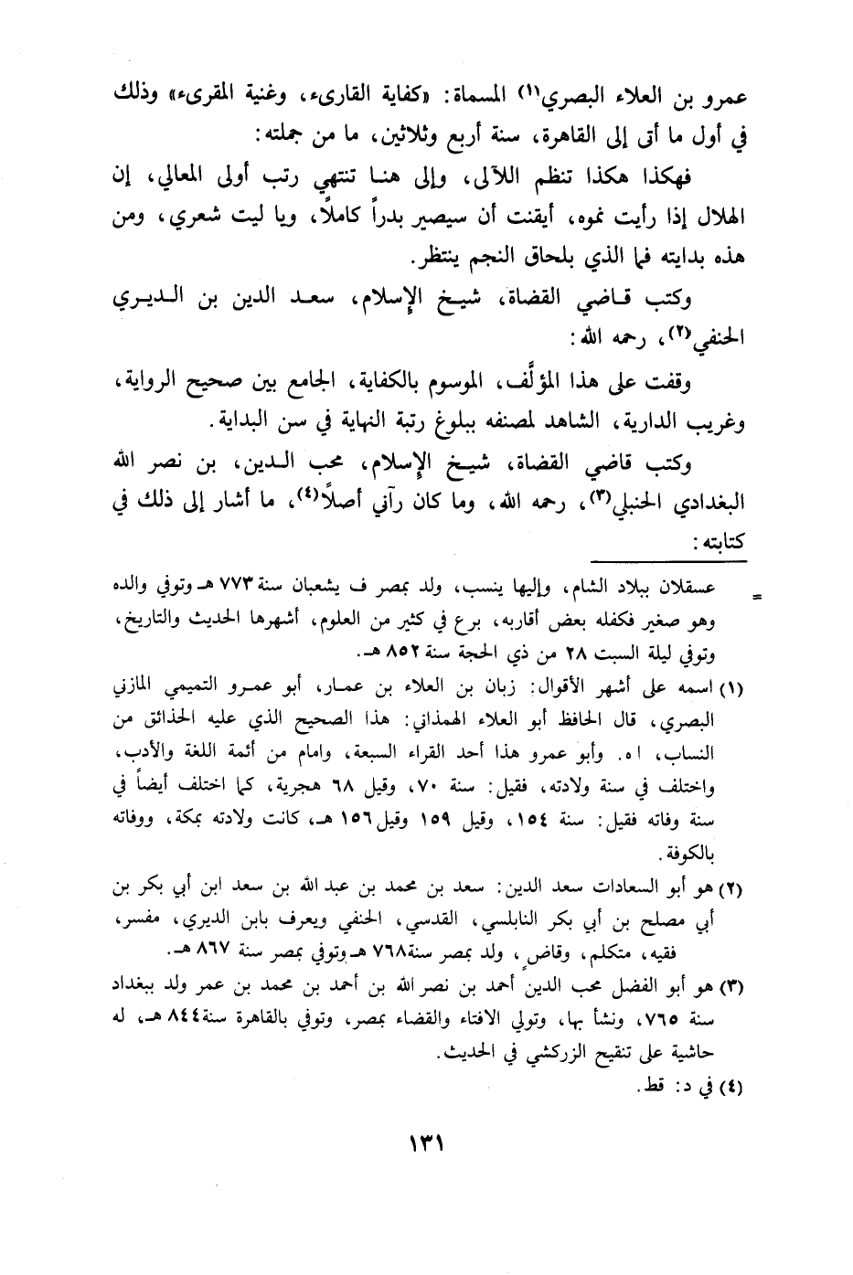 عمرو بن العلاء البصري المسماة: "كفاية القارىء، وغنية المقرىء" وذلك