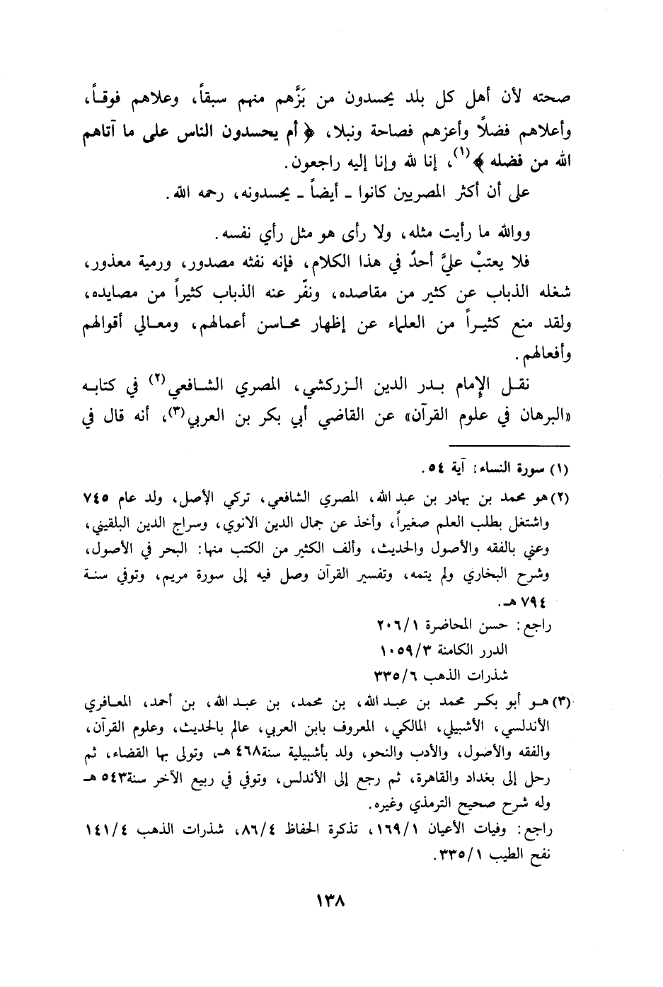 نقل الِإمام بدر الدين الزركشي، المصري الشافعي في كتابه