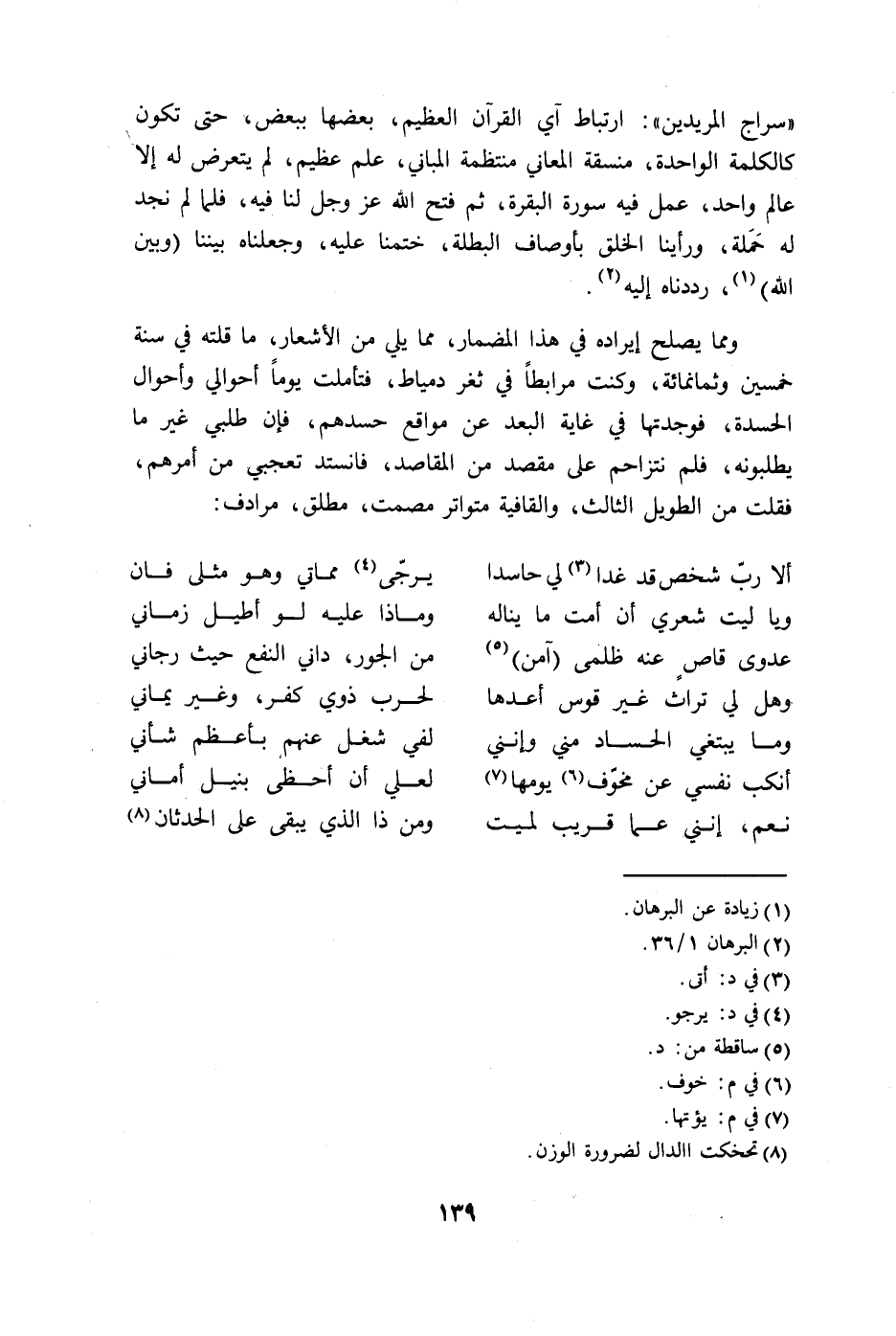 "سراج المريدين ": ارتباط آي القرآن العظيم، بعضها ببعض، حتى تكون