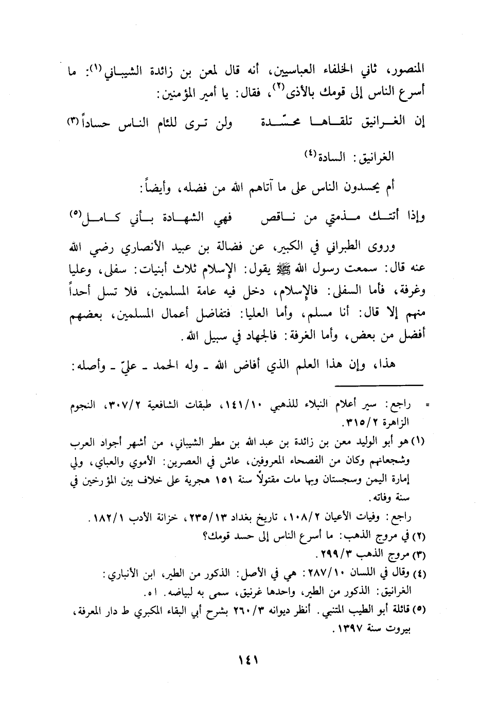 إن الغرانيق تلقاها محسّدة. . . ولن ترى للئام الناس حساداً