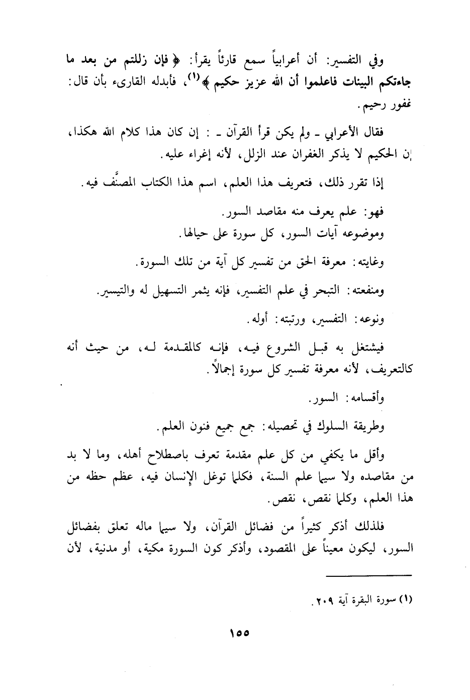 كالتعريف، لأنه معرفة تفسير كل سورة إجمالاً.