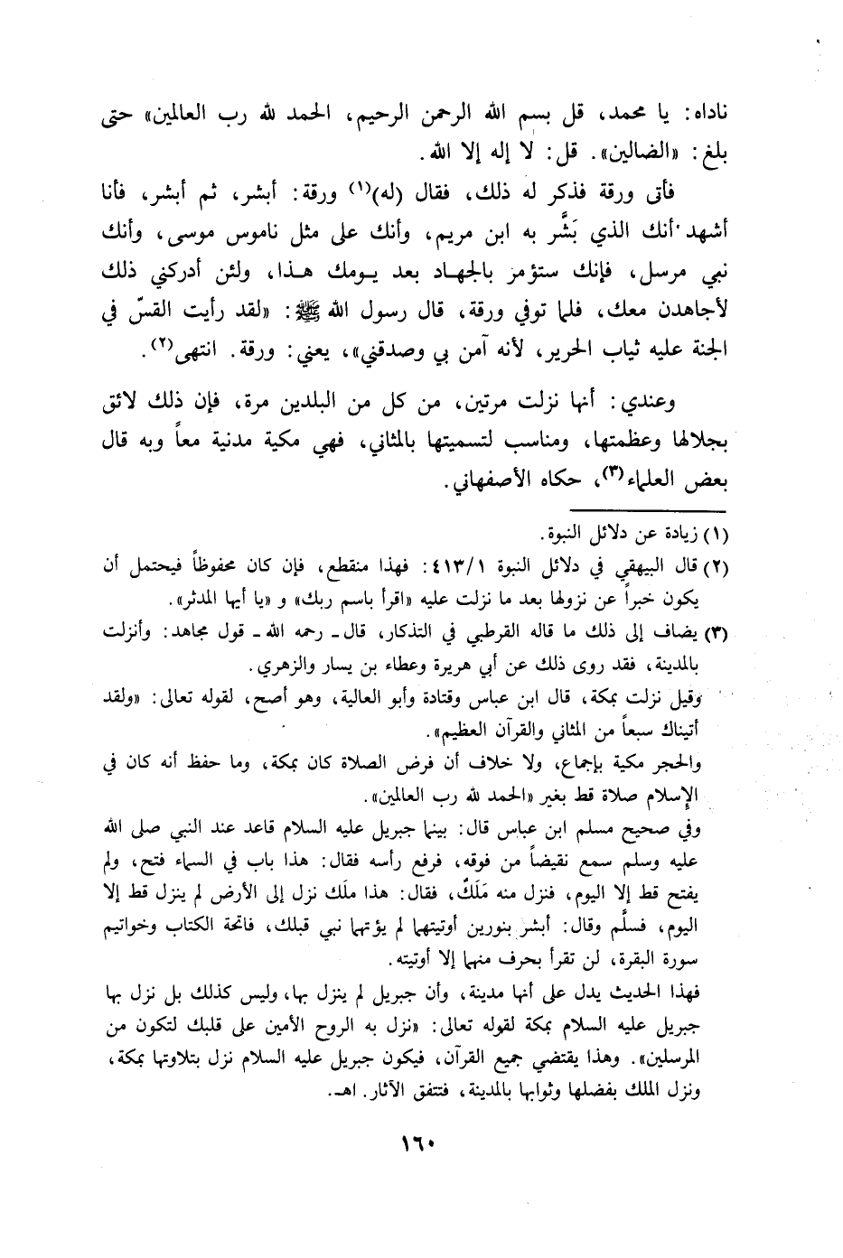 ناداه: يا محمد، قل بِسْمِ اللَّهِ الرَّحْمَنِ الرَّحِيمِ، الحمد للهِ رب العالمين " حتى