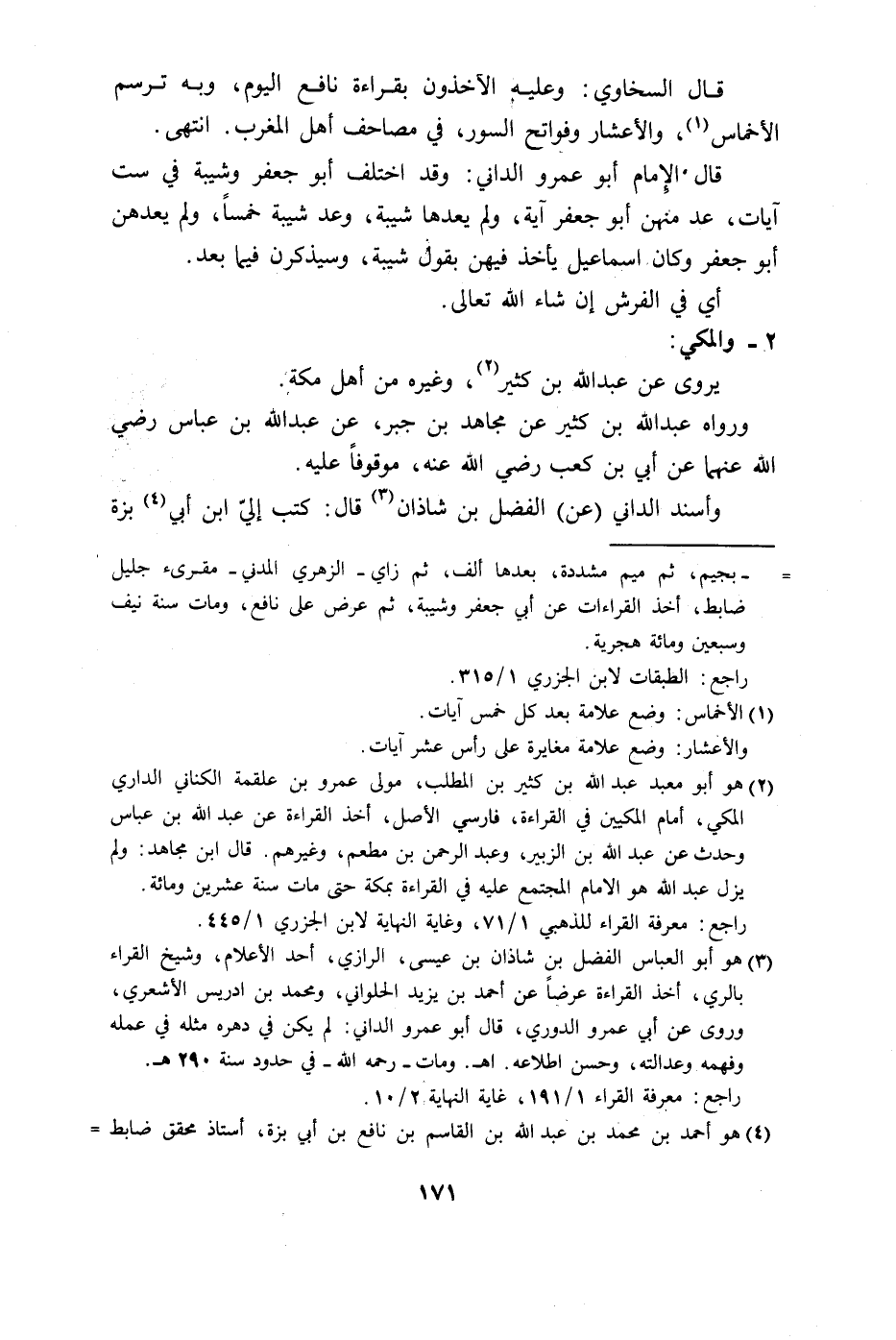 وأسند الداني (عن) الفضل بن شاذان قال: كتب إليّ ابن أبي بزة