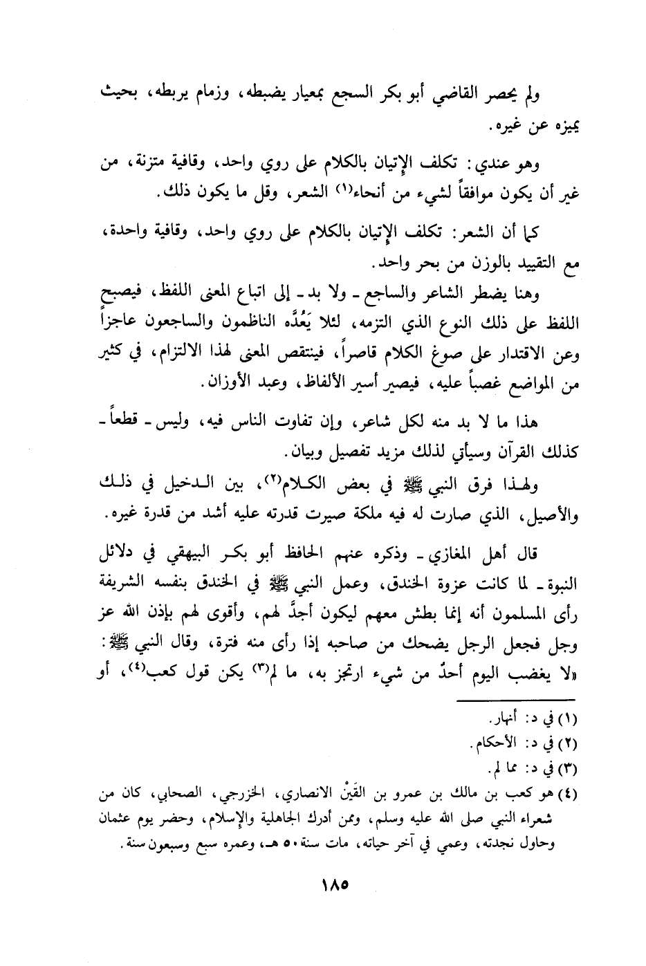 ولم يحصر القاضي أبو بكر السجع بمعيار يضبطه، وزمام يربطه، بحيث