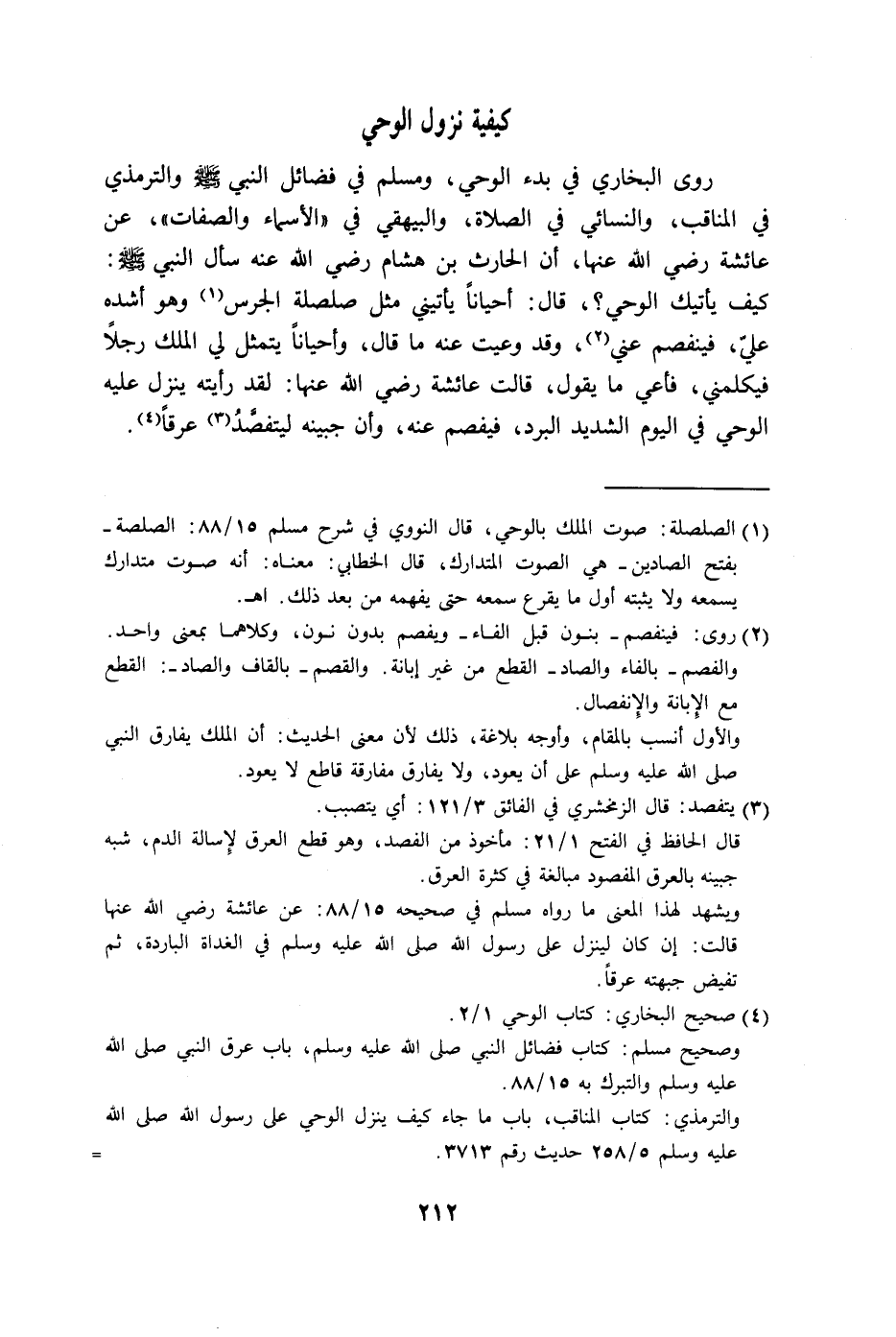 الوحي في اليوم الشديد البرد، فيفصم عنه، وأن جبينه ليتفصدُ عرقاً.