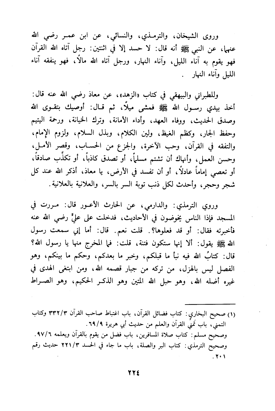 عنهما، عن النبي في أنه قال: لا حسد إلا في اثنتين: رجل آتاه الله القرآن