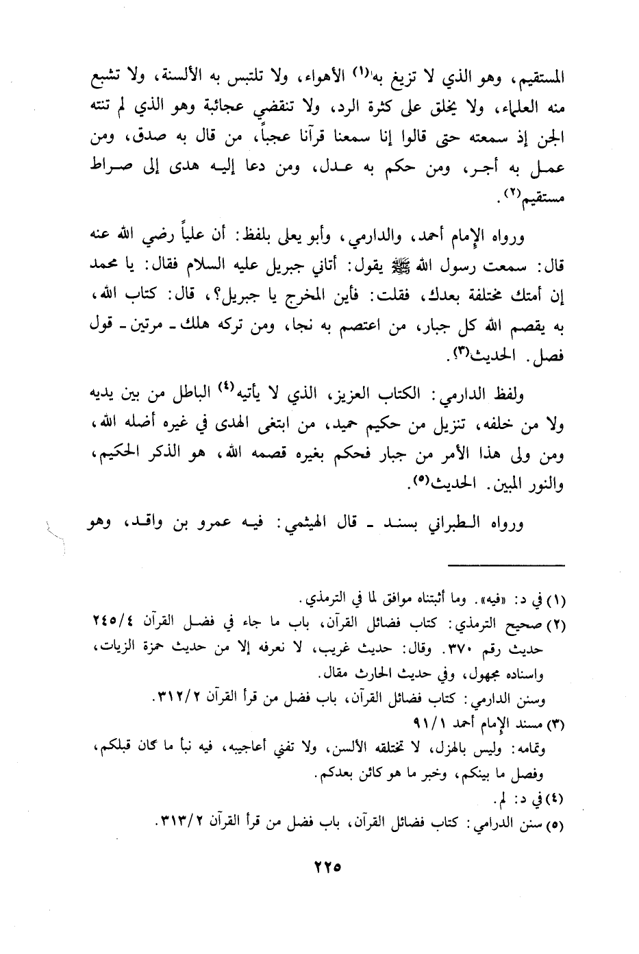 ولفظ الدارمي: الكتاب العزيز، الذي لا يأتيه الباطل من بين يديه