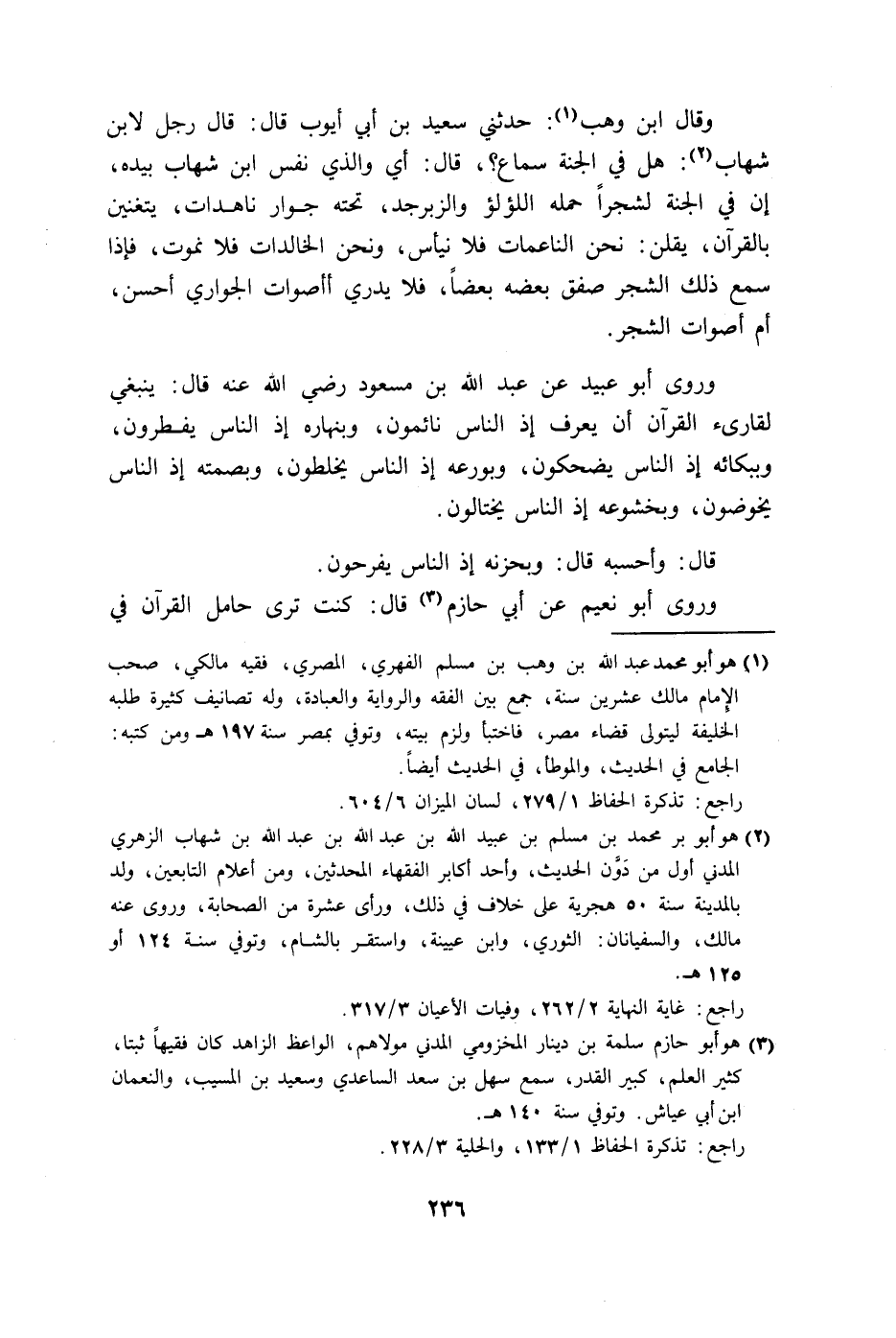 وروى أبو عبيد عن عبد الله بن مسعود رضي الله عنه قال: ينبغي