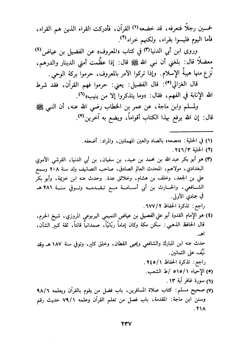 قال الغزالي: قال الفضيل: يعني: حرموا فهم القرآن، فقد شرط
