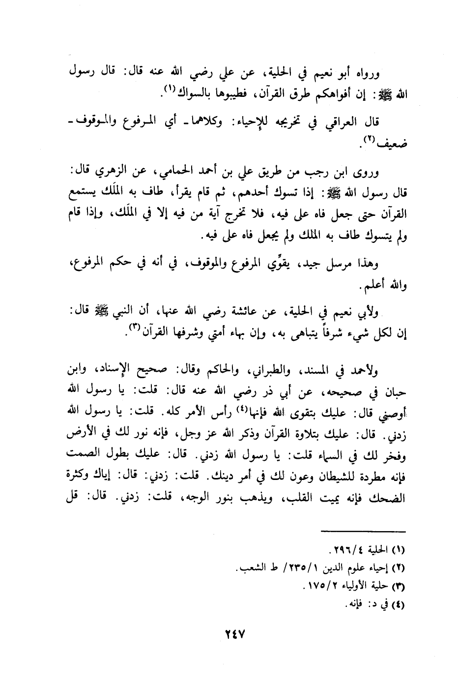 الله - صلى الله عليه وسلم -: إن أفواهكم طرق القرآن، فطيبوها بالسواك.