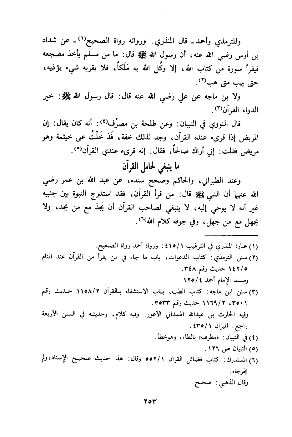 ولا بن ماجه عن علي رضي الله عنه قال: قال رسول الله - صلى الله عليه وسلم -: خير الدواء القرآن.