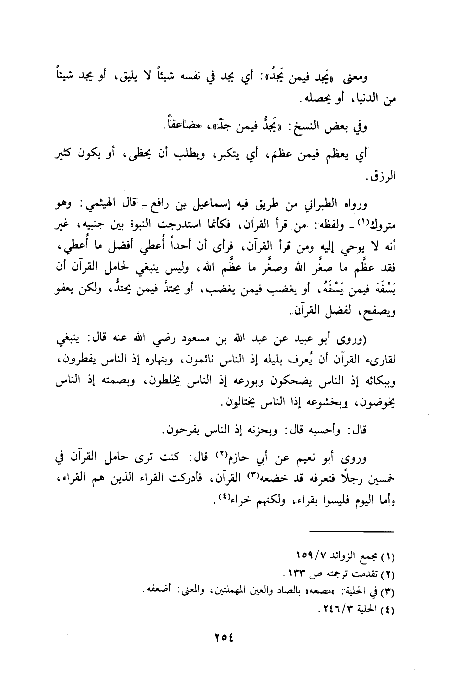 وروى أبو عبيد عن عبد الله بن مسعود رضي الله عنه قال: ينبغي
