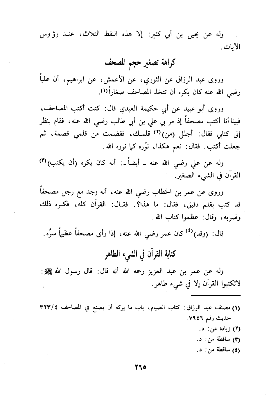 رضي الله عنه كان يكره أن تتخذ المصاحف صغاراً.