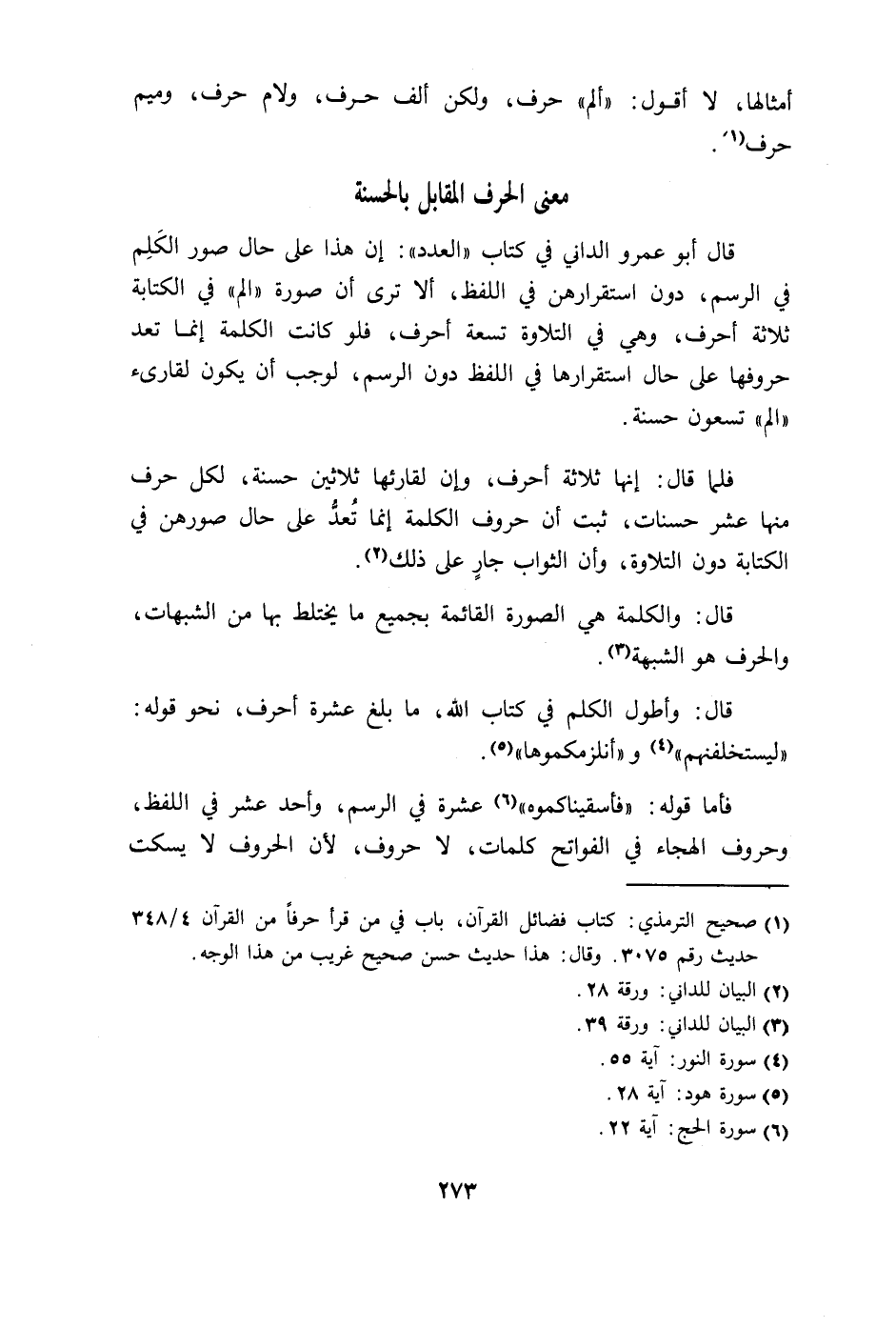 منها عشر حسنات، ثبت أن حروف الكلمة إنما تُعدُّ على حال صورهن في