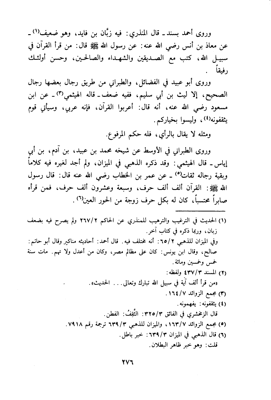 وروى أبو عبيد في الفضائل، والطبراني من طريق رجال بعضها رجال