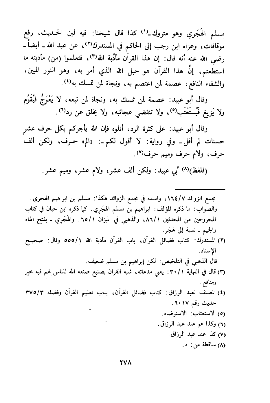 موقافات، وعزاه ابن رجب إلى الحاكم في المستدرك، عن عبد الله - أيضاَ - رضي الله عنه أنه قال: إن هذا القرآن مأدبة الله، فتعلموا (من) مأدبته ما