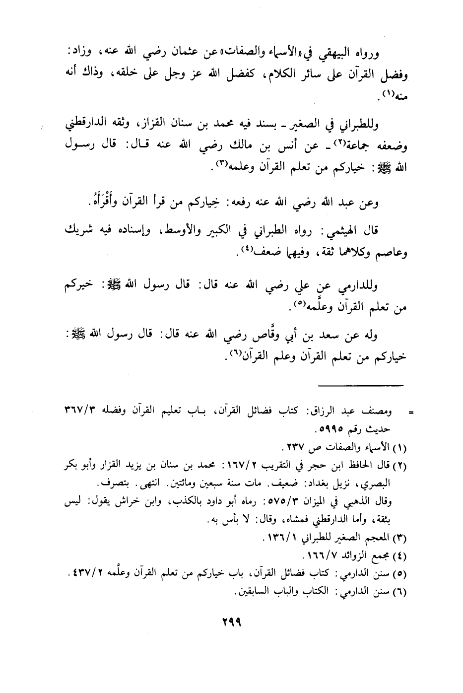 وللدارمي عن علي رضي الله عنه قال: قال رسول الله - صلى الله عليه وسلم -: خيركم من تعلم القرآن وعلَّمه.