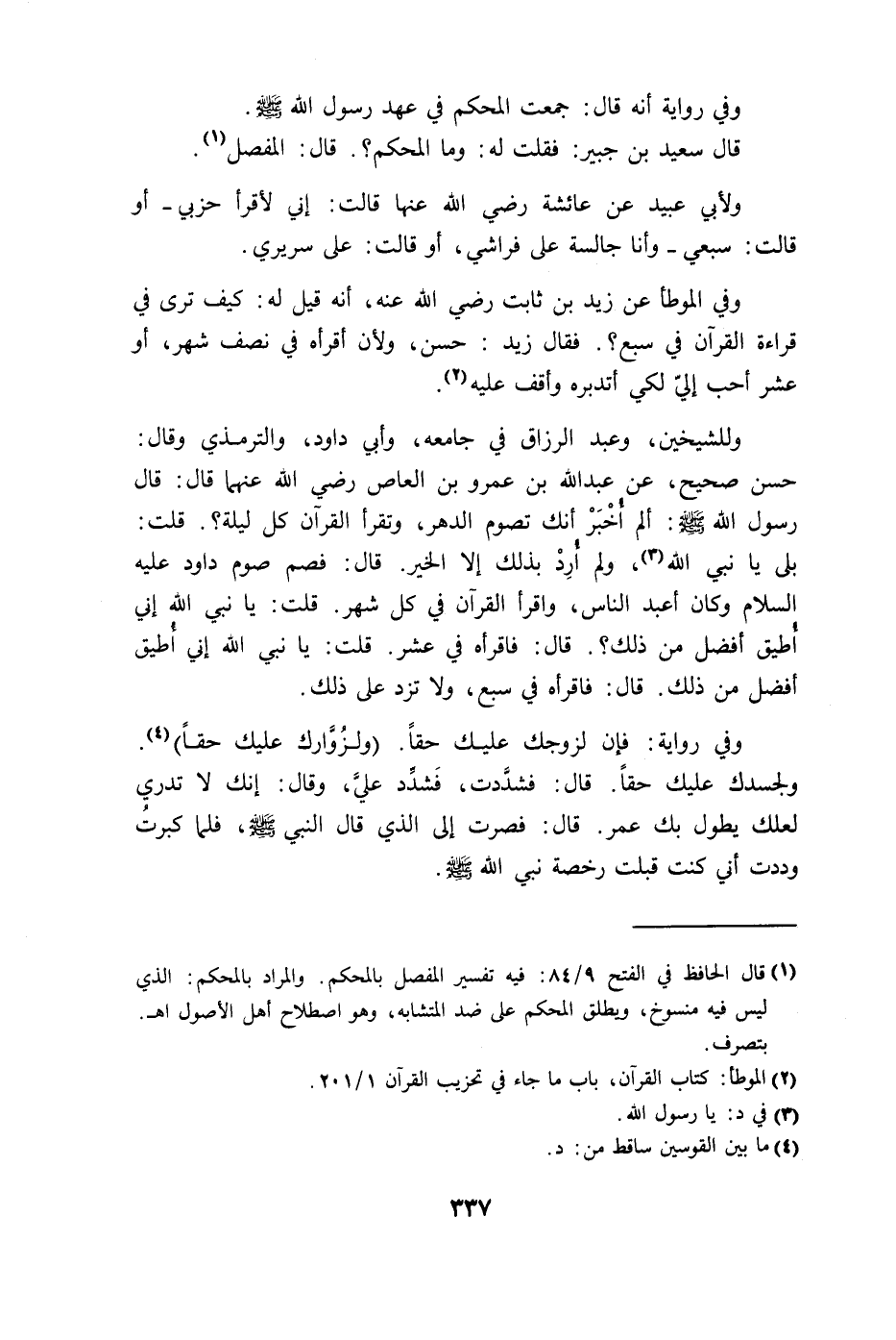 فقال زيد: حسن، ولأن أقرأه في نصف شهر، أو عشر أحب إليّ لكي أتدبره وأقف عليه.