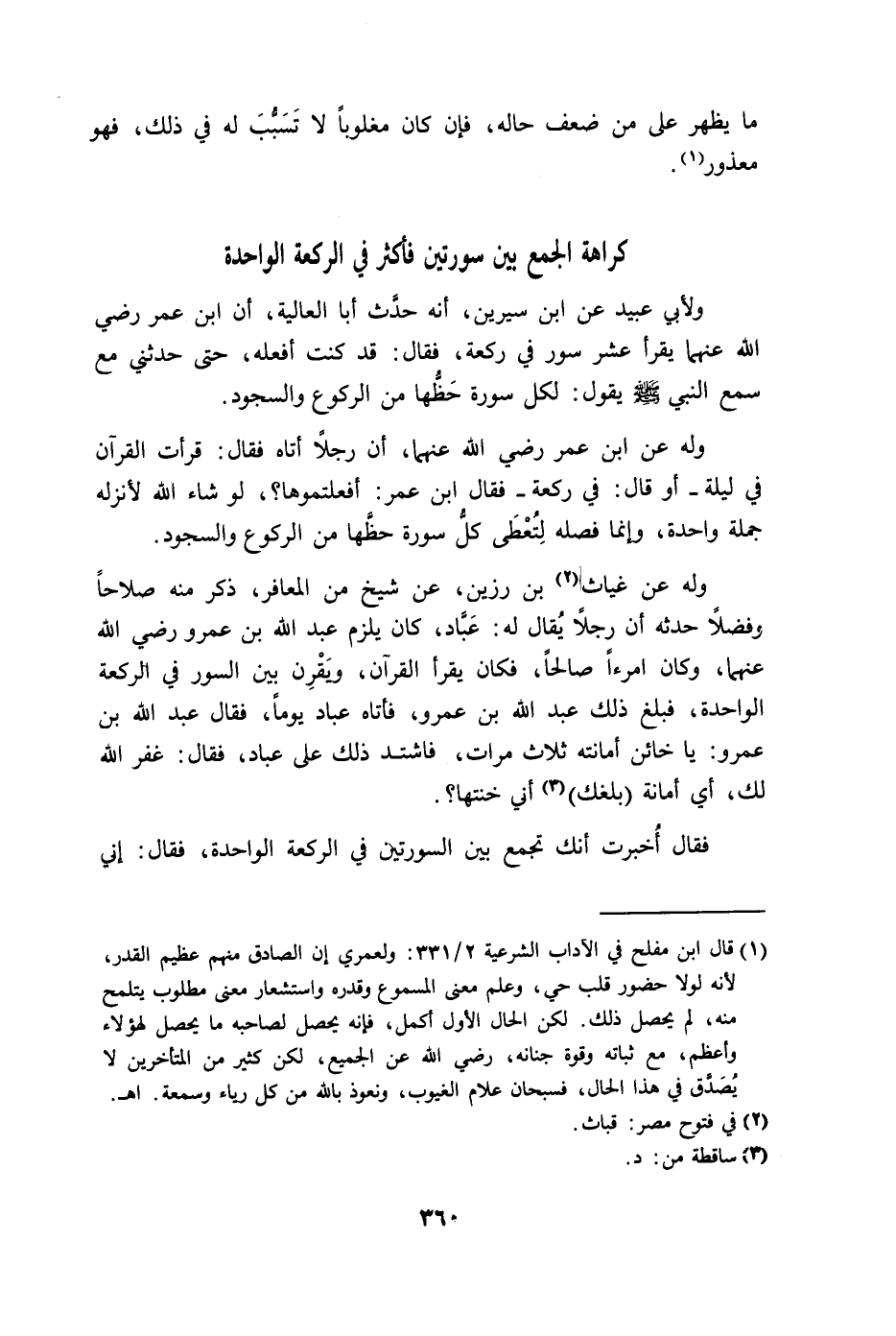 كراهة الجمع بين سورتين فأكثر في الركعة الواحدة