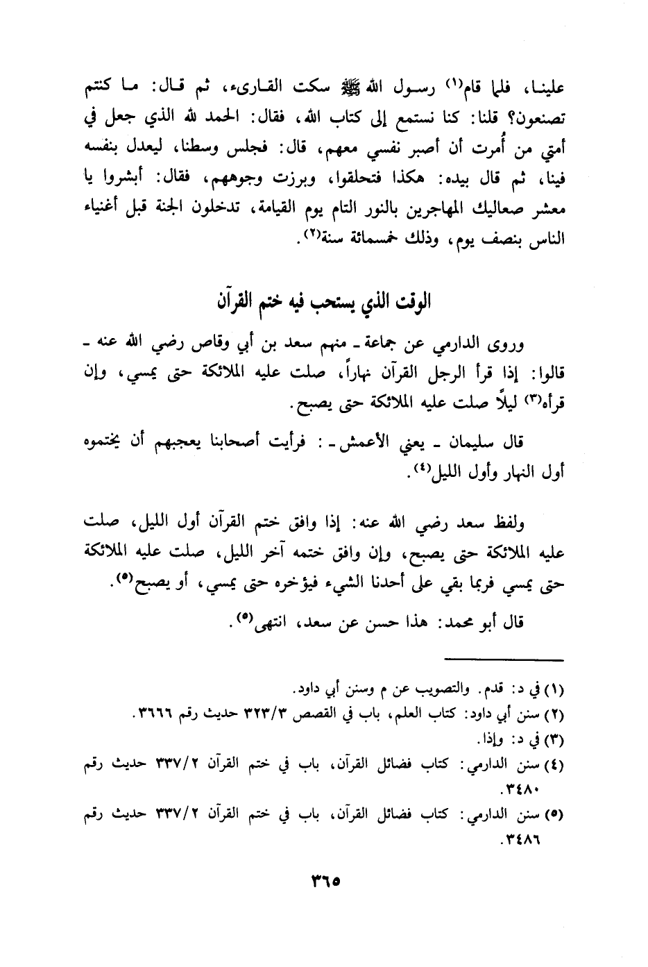 وروى الدارمي عن جماعة - منهم سعد بن أبي وقاص رضي الله عنه -