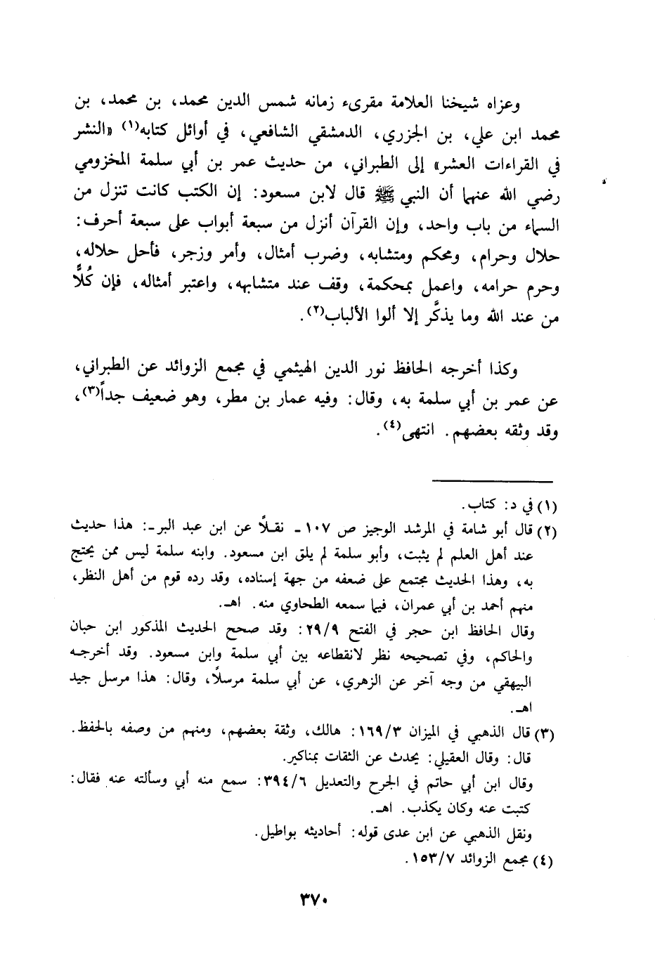 في القراءات العشر" إلى الطبراني، من حديث عمر بن أبي سلمة المخزومي