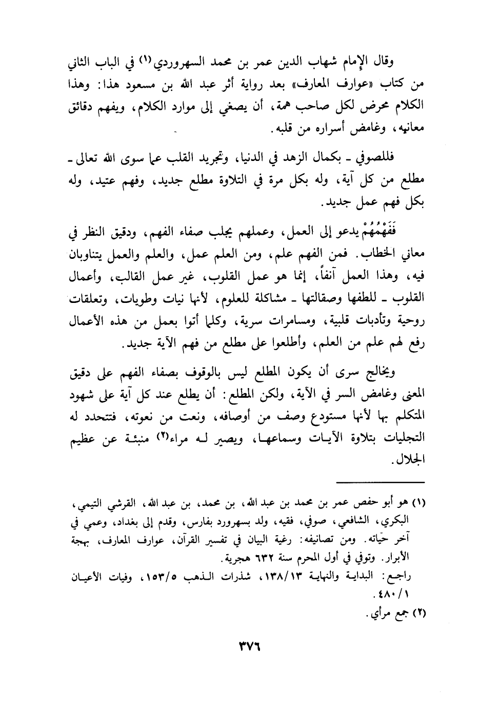 وقال الِإمام شهاب الدين عمر بن محمد السهروردي في الباب الثاني