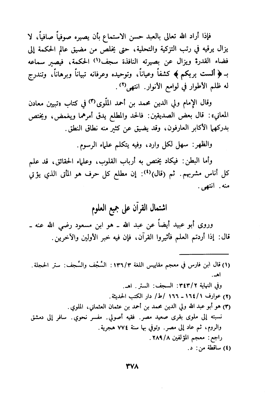 وقال الِإمام ولي الدين محمد بن أحمد الملَّوى في كتاب "تبيين معادن المعاني":