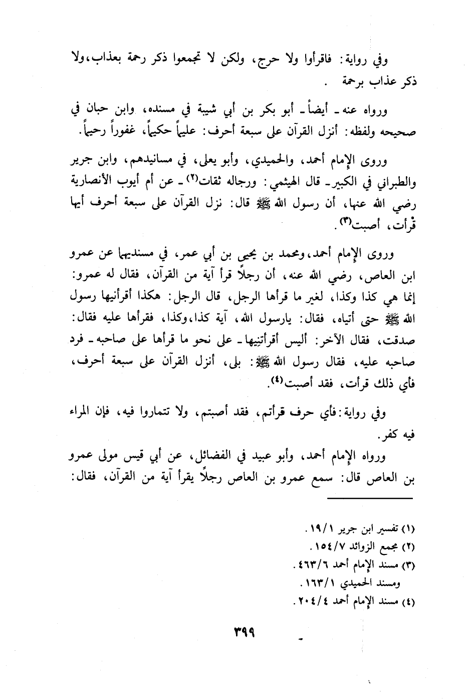 وروى الِإمام أحمد، والحميدي، وأبو يعلى، في مسانيدهم، وابن جرير