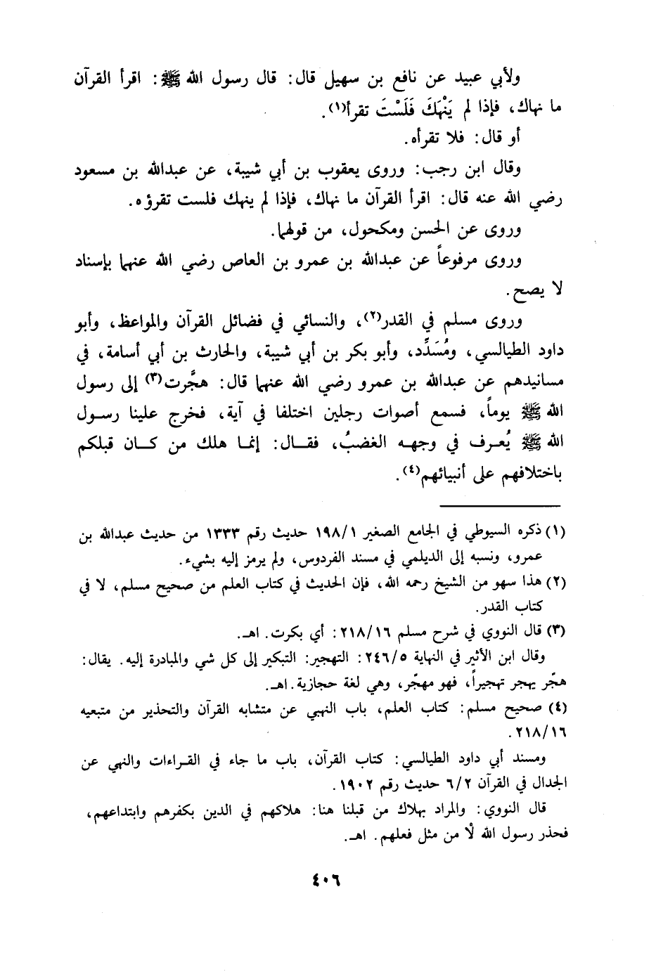 وروى مسلم في القدر، والنسائي في فضائل القرآن والمواعظ، وأبو