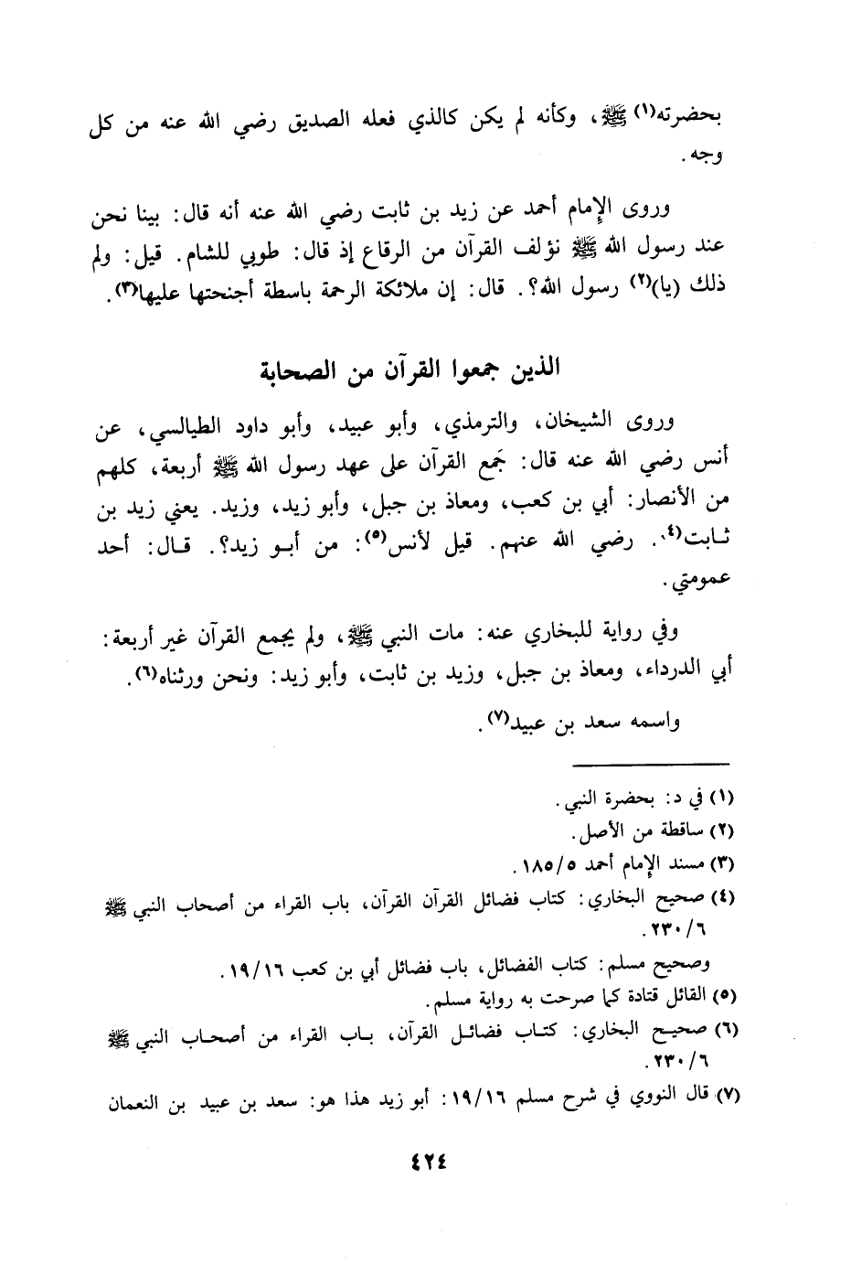 وفي رواية للبخاري عنه: مات النبي - صلى الله عليه وسلم - ولم يجمع القرآن غير أربعة: أبو الدرداء، ومعاذ بن جبل، وزيد بن ثابت، وأبو زيد: ونحن ورثناه.