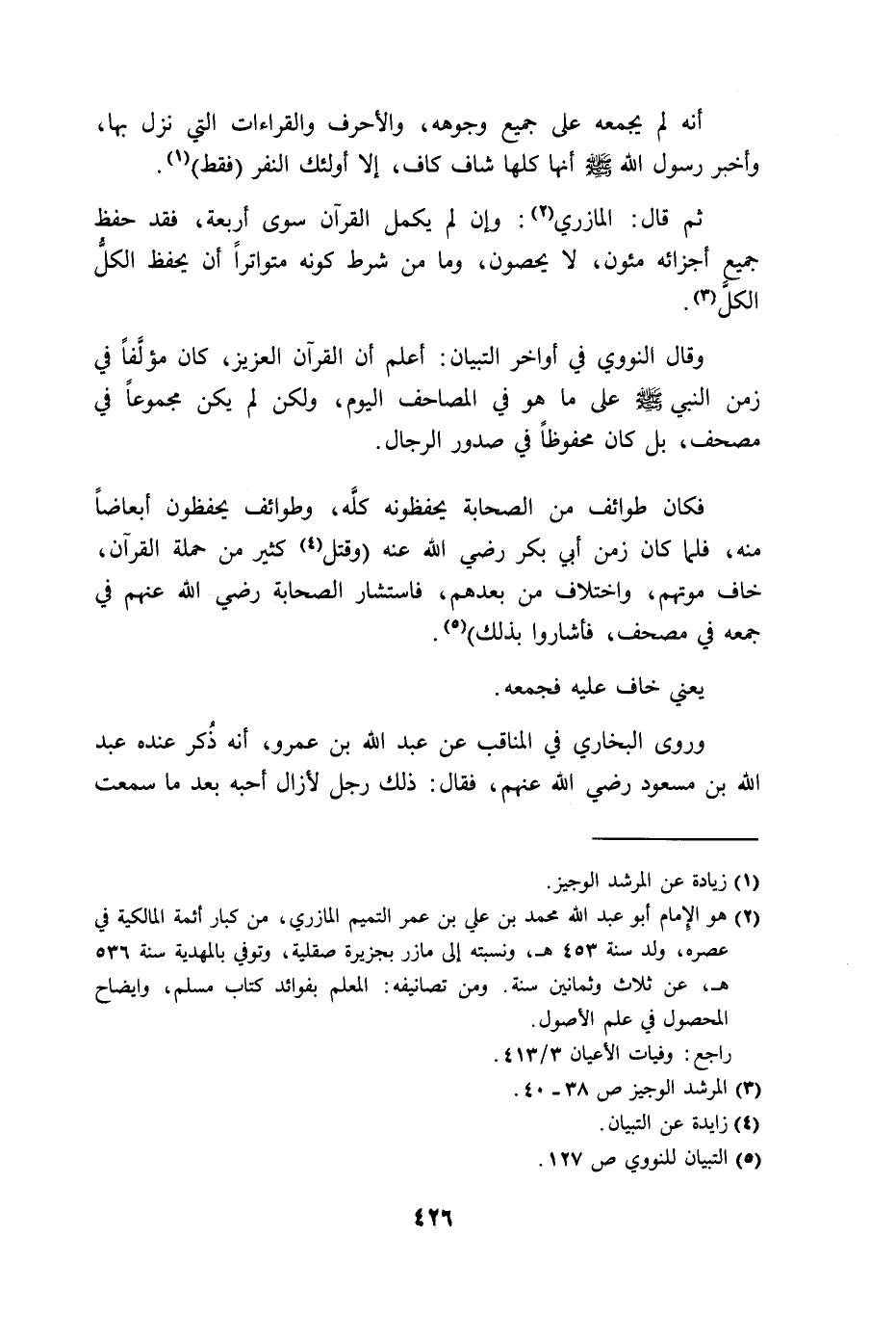 وقال النووي في أواخر التبيان: اعلم أن القرآن العزيز، كان مؤلَّفاً في