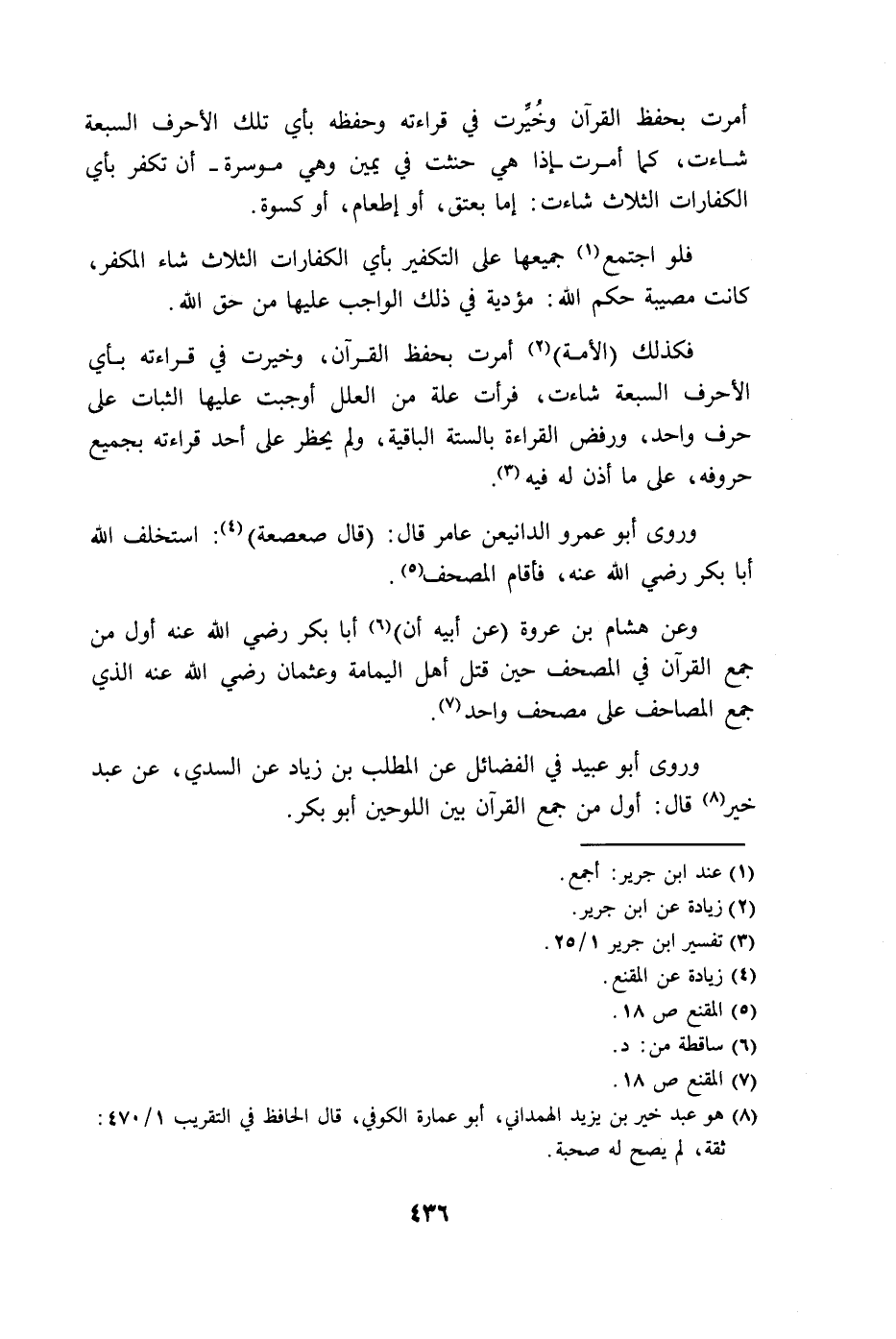 فكذلك (الأمة) أمرت بحفظ القرآن، وخيرت في قراءته بأي