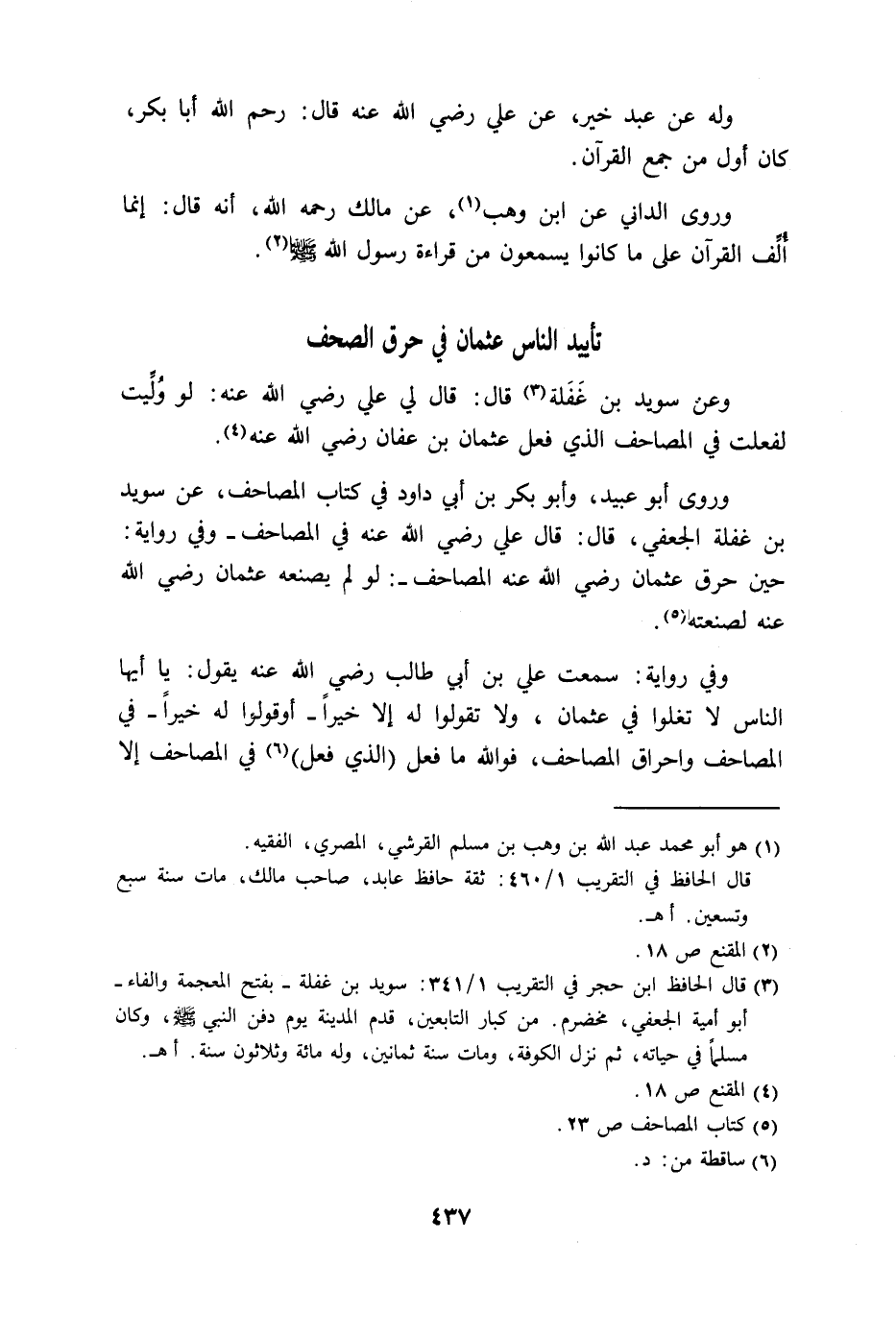وروى أبو عبيد، وأبو بكر بن أبي داود في كتاب المصاحف، عن سويد