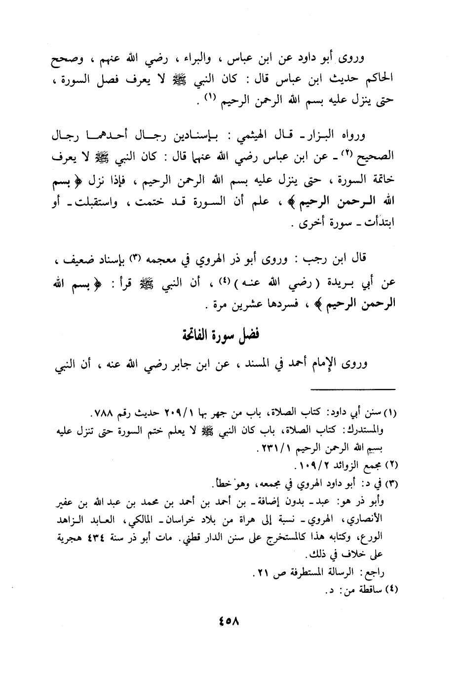 الحاكم حديث ابن عباس قال: كان النبي - صلى الله عليه وسلم - لا يعرف فصل السورة، حتى ينزل عليه بِسْمِ اللَّهِ الرَّحْمَنِ الرَّحِيمِ.
