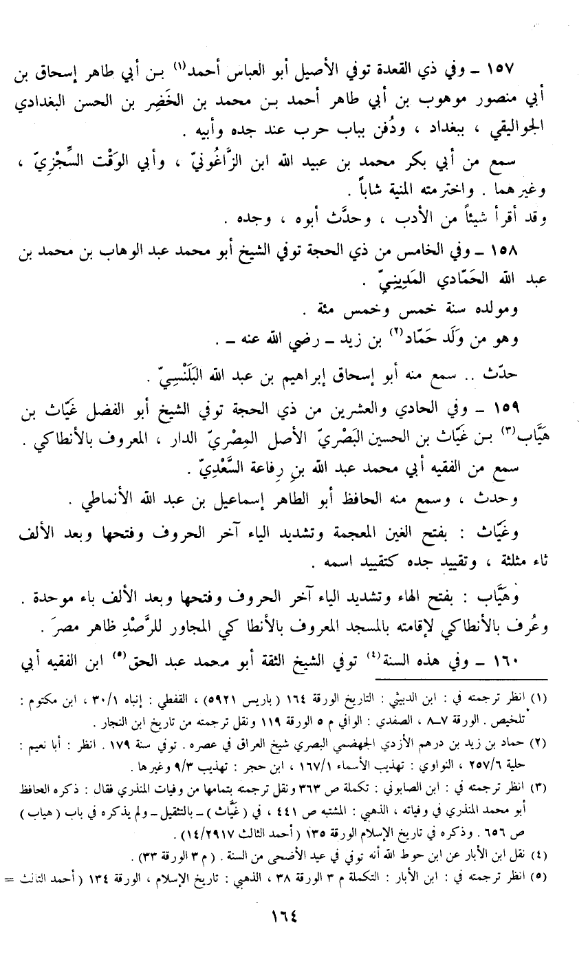 159 - وفي الحادي والعشرين من ذي الحجة توفي الشيخ أبو الفضل غياث بن هياب بن غياث بن الحسين البصري الأصل المصري الدار، المعروف بالأنطاكي.