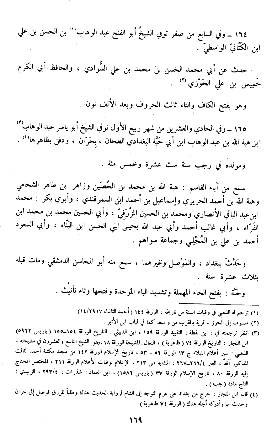 164 - وفي السابع من صفر توفي الشيخ أبو الفتح عبد الوهاب بن الحسن بن علي ابن الكتاني الواسطي.