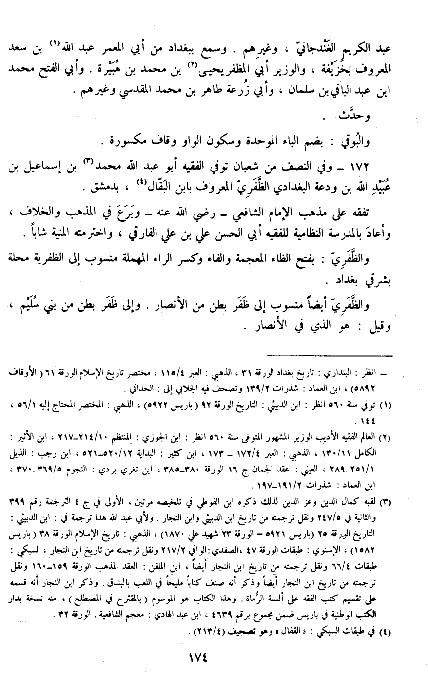 172 - وفي النصف من شعبان توفي الفقيه أبو عبد الله محمد بن إسماعيل بن عبيد الله بن ودعة البغدادي الظفري المعروف بابن البقال، بدمشق.