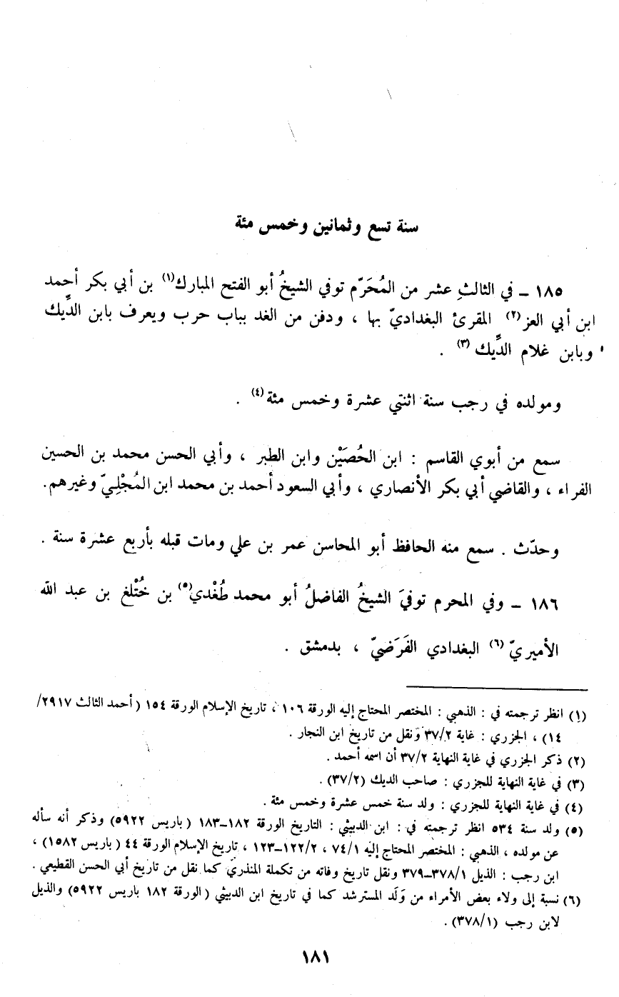 186 - وفي المحرم توفي الشيخ الفاضل أبو محمد طغدي بن ختلغ بن عبد الله الأميري البغدادي الفرضي، بدمشق.