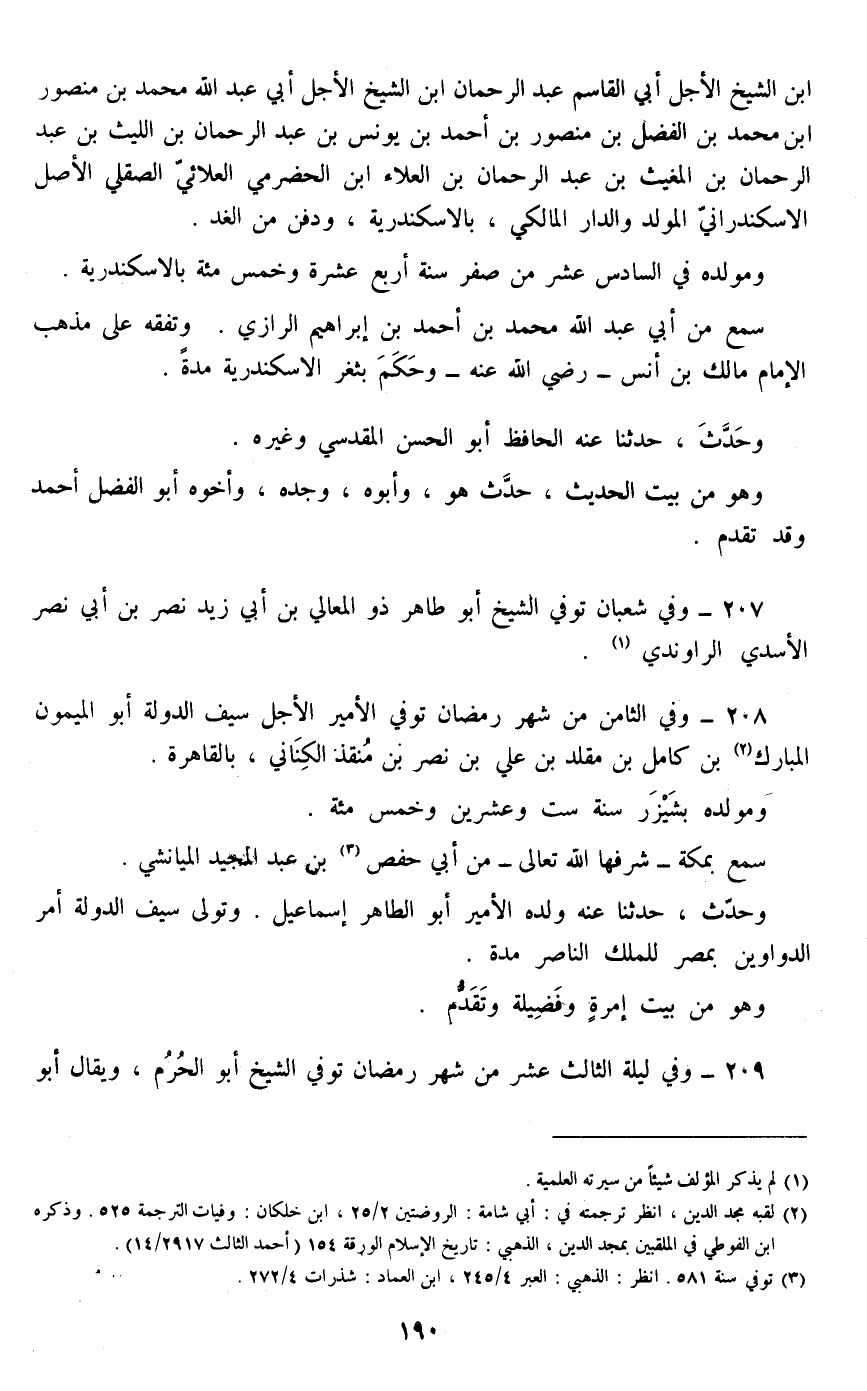 207 - وفي شعبان توفي الشيخ أبو طاهر ذو المعالي بن أبي زيد نصر بن أبي نصر الأسدي الراوندي