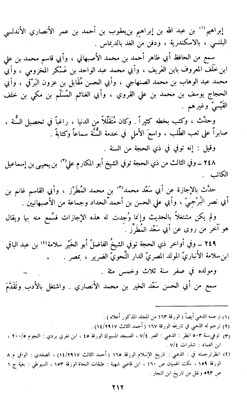 249 - وفي أواخر ذي الحجة توفي الشيخ الفاضل أبو الخير سلامة بن عبد الباقي بن سلامة الأنباري المولد المصري الدار النحوي الضرير، بمصر.