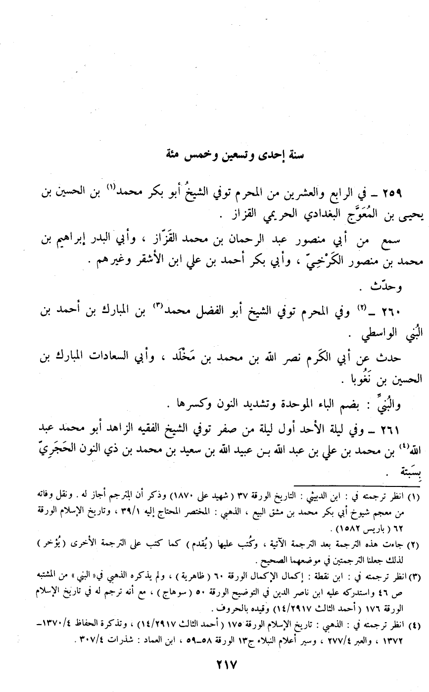 260 - وفي المحرم توفي الشيخ أبو الفضل محمد بن المبارك بن أحمد بن البني الواسطي