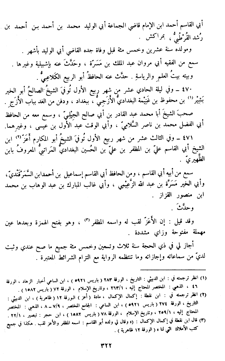471 - وفي الثالث عشر من شهر ربيع الأول توفي الشيخ أبو المكارم أعز ابن الشيخ أبي القاسم علي بن المظفر بن علي بن الحسين البغدادي المراتبي المعروف بابن الظهيري