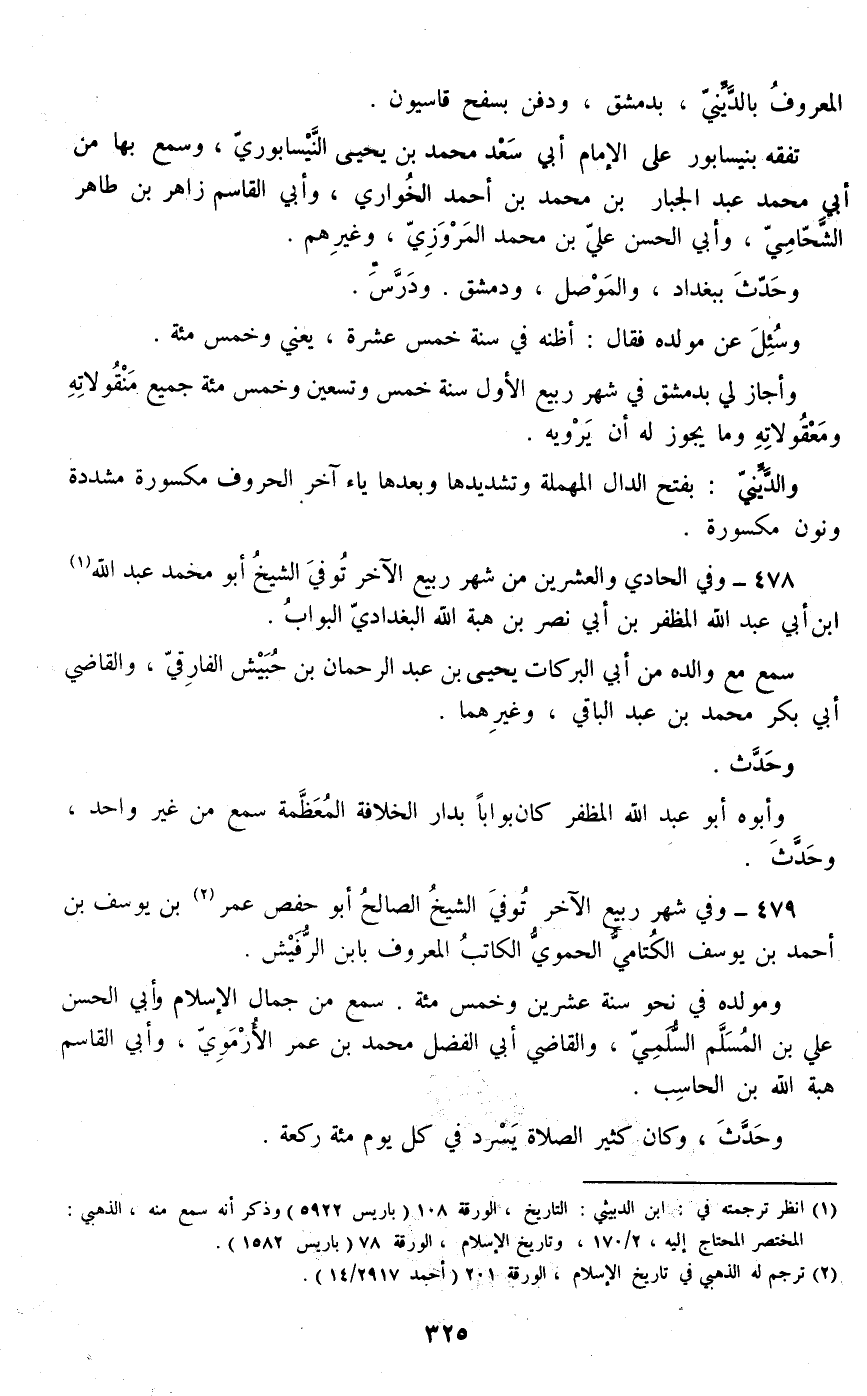 479 - وفي شهر ربيع الآخر توفي الشيخ الصالح أبو حفص عمر بن يوسف بن أحمد بن يوسف الكتامي الحموي الكاتب المعروف بابن الرفيش