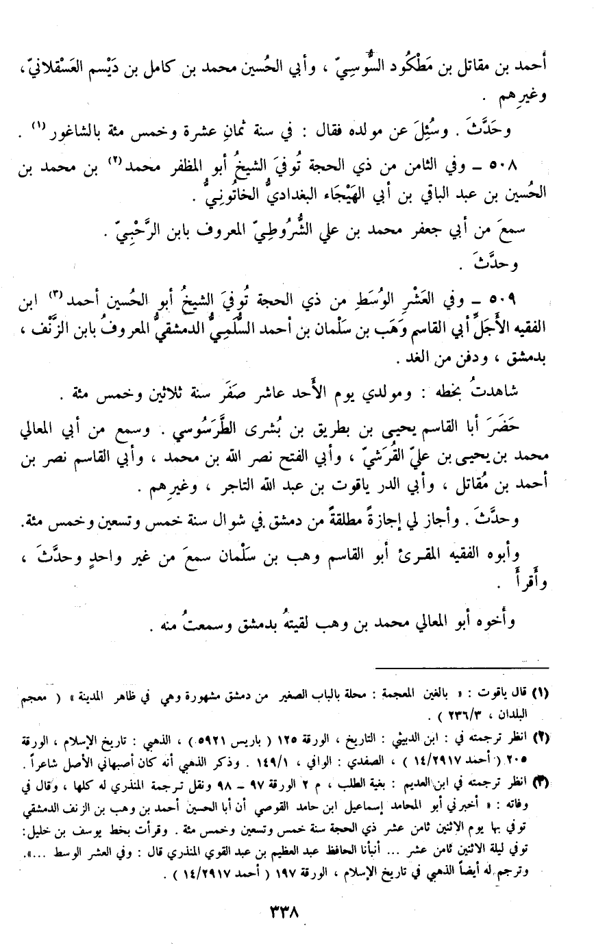 509 - وفي العشر الوسط من ذي الحجة توفي الشيخ أبو الحسين أحمد ابن الفقيه الأجل أبي القاسم وهب بن سلمان بن أحمد السلمي الدمشقي المعروف بابن الزنف، بدمشق، ودفن من الغد.