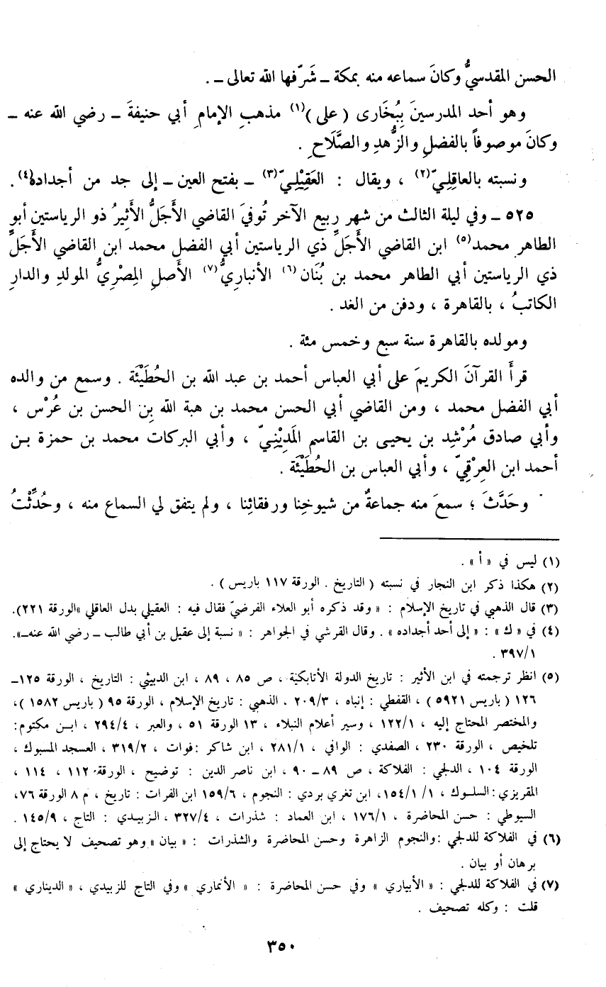 وحدث؛ سمع منه جماعة من شيوخنا ورفقائنا، ولم يتفق لي السماع منه، وحدثت #351# عنه. وسافر إلى اليمن فبعثه سيف الإسلام طغتكين بن أيوب رسولا إلى الديوان العزيز –مجده الله تعالى- ببغداد، فقدمها وحدث بها بكتاب "السيرة" لابن هشام وكتاب "الصحاح" للجوهري، وسمع بها منه جماعة كبيرة. وكان كتب الكثير بخطه، وخطه في غاية الجودة. وتولى ديوان النظر في الدولة المصرية، وتقلب في الخدم الديوانية في الأيام الصلاحية بتنيس والاسكندرية وغير ذلك.
