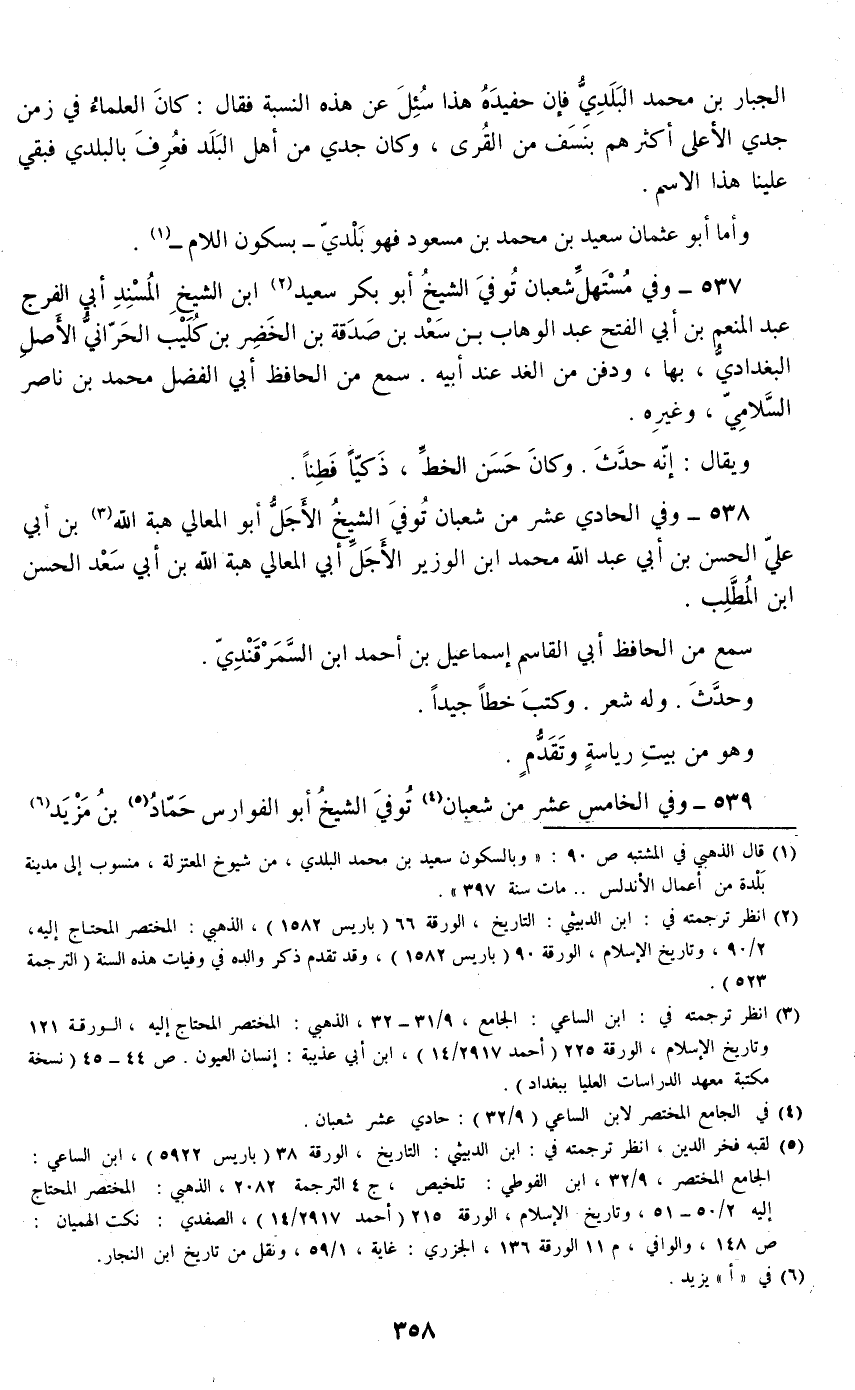 538 - وفي الحادي عشر من شعبان توفي الشيخ الأجل أبو المعالي هبة الله بن أبي علي الحسن بن أبي عبد الله محمد ابن الوزير الأجل أبي المعالي هبة الله بن أبي سعد الحسن ابن المطلب