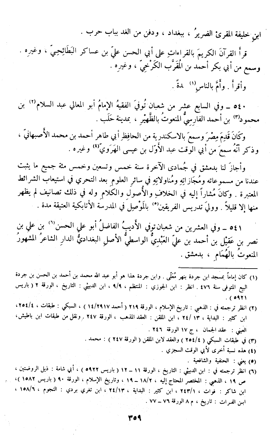 540 - وفي السابع عشر من شعبان توفي الفقيه الإمام أبو المعالي عبد السلام بن محمود بن أحمد الفارسي المنعوت بالظهير، بمدينة حلب.