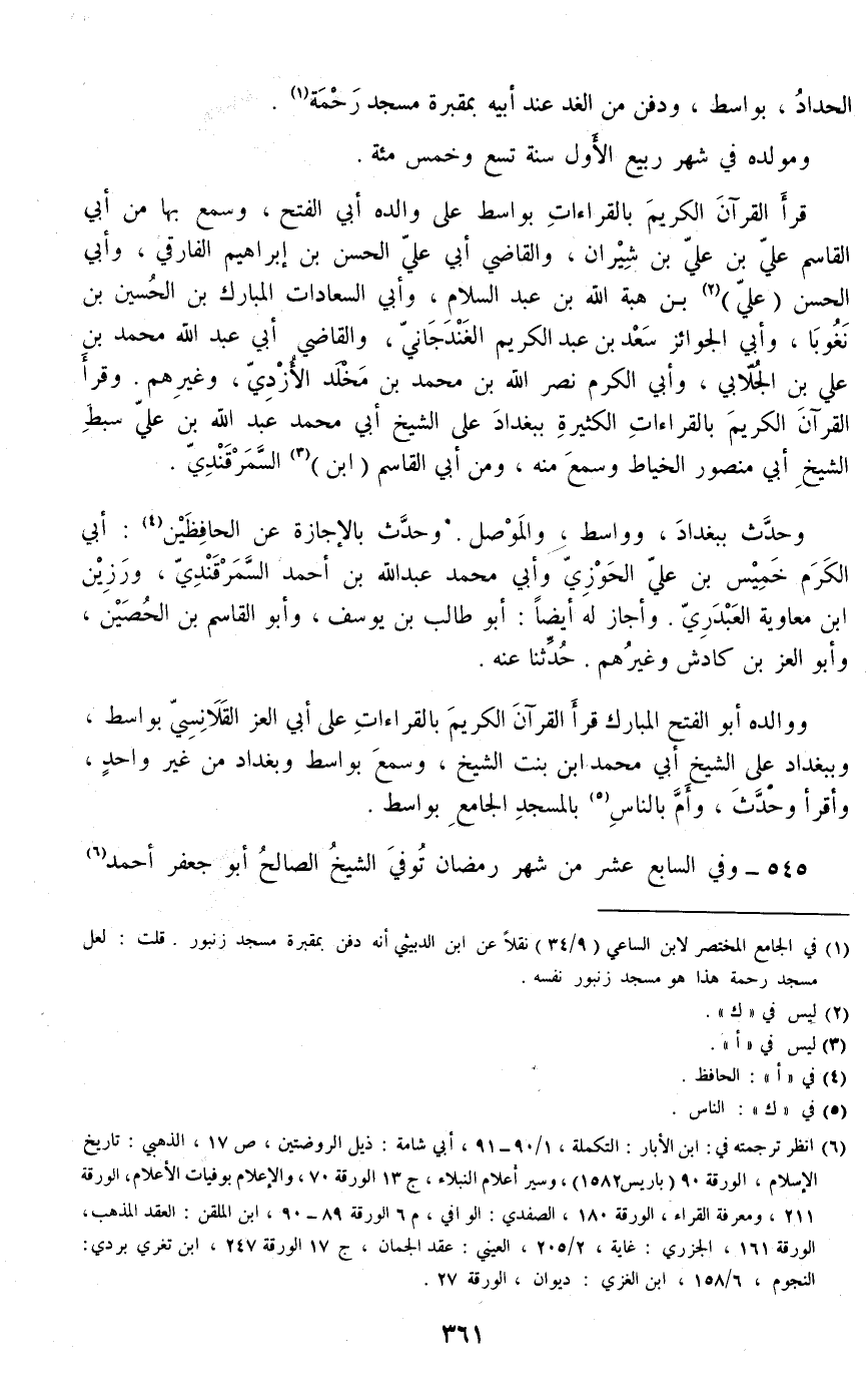 545 - وفي السابع عشر من شهر رمضان توفي الشيخ الصالح أبو جعفر أحمد بن علي بن أبي بكر عتيق بن إسماعيل الأندلسي القرطبي الفنكي المقرئ الشافعي نزيل دمشق، #362# بها، ودفن من الغد بجبل قاسيون.