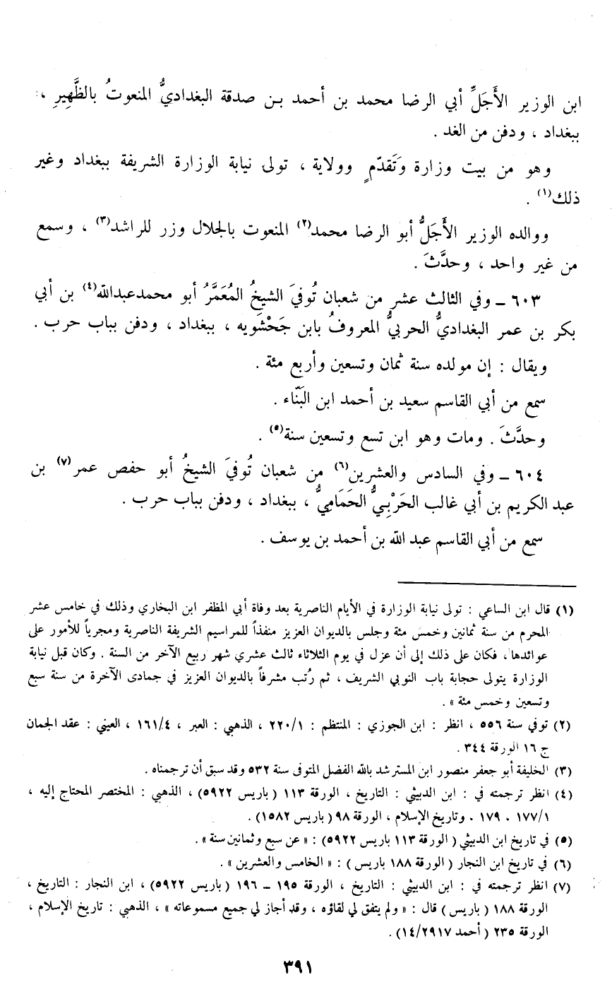 604 - وفي السادس والعشرين من شعبان توفي الشيخ أبو حفص عمر بن عبد الكريم بن أبي غالب الحربي الحمامي، ببغداد، ودفن بباب حرب.